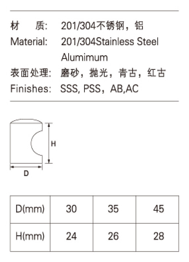 가구 스테인리스 손잡이, 스테인리스 문 잡아당기기 30 35 45mm 직경
